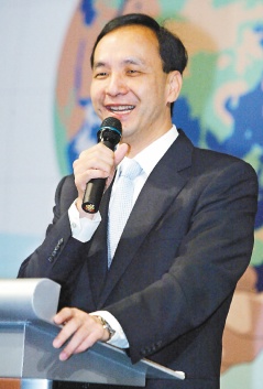 朱立伦红光满面,皮肤很好,昨天他自爆养颜秘方是用男性专用的洗面奶保养。(来源:台湾《联合报》)