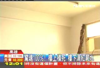 中国台湾网11月20日消息 据台湾TVBS电视台报道,高雄县一名女子这几天发现墙角天花板流出暗红色、有臭味的水。报警后,警方到公寓3楼开门,才发现在房间里有一具发黑浮肿的男尸倒卧床上,尸水渗出棉被流到地板再渗进楼下房间,惊悚情景犹如恐怖电影情节。