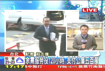 法官在今天做出宣判,余政宪判处2年有期徒刑,缓刑5年,剥夺政治权利4年,法官并要求余政宪在缓刑期间,需要服120小时的义务劳务,并向公库缴纳500万元(新台币,下同)。