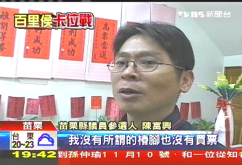 苗栗县议员参选人陈富兴则表示,自己没有所谓的桩脚,也没有买票。他称自己从政以来,都是清清白白参选。