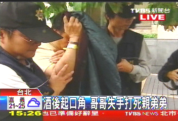 酒后起口角 台北市发生哥哥失手打死亲弟弟惨剧。(图片来源:台湾TVBS电视台)