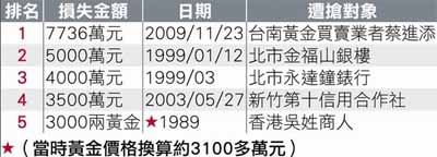 岛内五大抢案,币种为新台币。 来源:台湾《苹果日报》