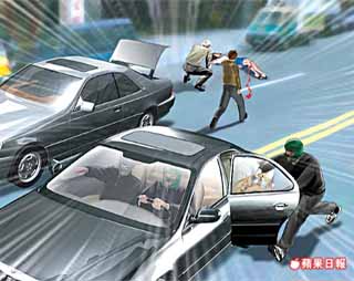抢劫过程仅30钞,三名抢匪带着巨款,搭上一辆接应的黑色轿车逃逸。 来源:台湾《苹果日报》