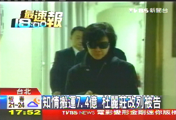 台检方今天增加杜丽庄为陈水扁洗钱案被告。(图片来源:台湾TVBS电视台)