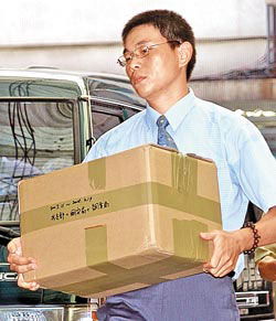 特侦组去年搜索扁办带回大批文件资料,部分纸箱上并写有台当局“外交部+国安局+调查局”等字眼,经过监定,确认资料属机密。图片来源:台湾《中国时报》