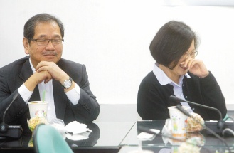 民进党秘书长吴乃仁(左)以完成“三合一”选举任务为由请辞秘书长,让党主席蔡英文(右)陷入两难。来源:台湾《联合报》
