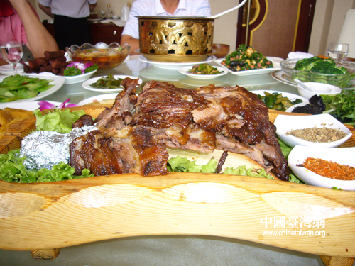 草原沿途都有院长的朋友一路宴请,天天大宴小酌,敬白酒、吃羊肉,是必不可少的公式,也是我心头与身体一大负担,但蒙族习俗如此,如果拒绝,就是最大的失礼。在内蒙古,羊身上各部位,都各有名称与吃法,例如羊的肩胛骨,别名“七十”,是羊肉的珍品,从前这个部位不能独享,吃的时候要分给众人,一人只得一小条,如果有舅父在场,更得征求舅父的同意才能吃,分肉时还得说:“扎(蒙语‘给’),胛子肉敬献给大家”,受的人也得口占祝福的话,例如: