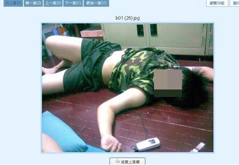 综合台湾媒体报道,大概军旅生活太无趣,台军士兵自拍上传事件时有所闻,以往见报的都是男兵在作怪,日前就有台空军在寝室拉K还传上网的事件。这次网友发现,竟有女兵完全破坏台军中禁令自拍,不但寝室中拍、上课受训时拍,还有“掀衣自拍”。