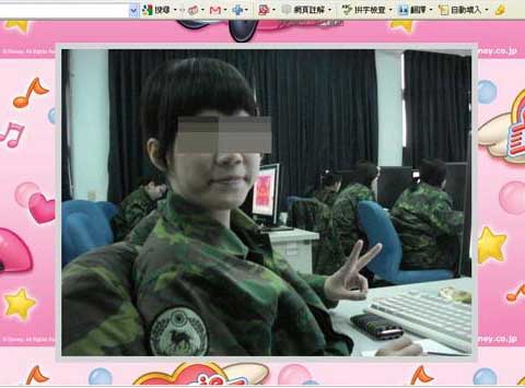 上图:女中士时时自拍,连上课受训时也不放过 。图片来源:台湾“今日新闻网”