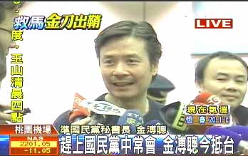 金溥聪今天清晨回到台湾。 来源:台湾TVBS电视台