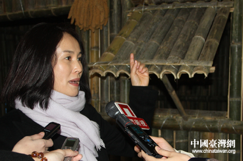 高金素梅介绍了展馆中的竹屋模型。(中国台湾网 董洁 摄)