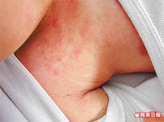 打完疫苗5天后,刘姓男童高烧不退、红疹更从双脚往上蔓延到双手、颈部,布满全身。 来源:台湾《苹果日报》