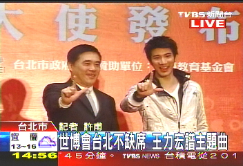 “一见你就笑” 王力宏创作上海世博会台北馆主题曲(图片来源:台湾TVBS电视台)