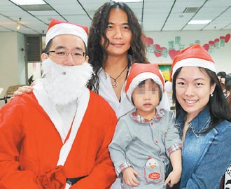 陈致中(左)黄睿靓(右)夫妇因涉嫌洗钱案昨天被检方起诉,但是他们似乎不受官司缠身的困扰,昨天带着女儿,突然出现在高雄市无障碍之家,参加圣诞联欢活动。来源:台湾《联合报》