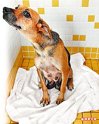半瘫的狗妈妈在寒风中哺育5只幼犬,送医后暂时与幼犬分开,治疗传染病。台湾《苹果日报》资料图