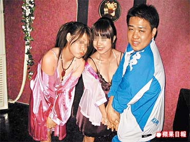 台空军丁姓连长(右)率士官赴酒吧狂欢,连长在温柔乡睡着。来源:台湾《苹果日报》