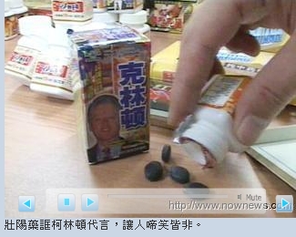 来路不明的药物,竟然还拿前美国总统克林顿、武打影星李连杰“代言”。(图片来源:台湾“今日新闻”)