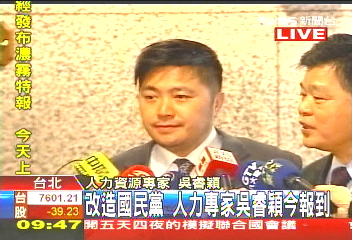 为了重新对党内人力,做出兵力调整,国民党中央请来人力资源专家吴睿颖,要为党的人事作规划,一早现身国民党部的他,显得相当紧张。吴睿颖:“谢谢大家,我们会努力做,谢谢。”