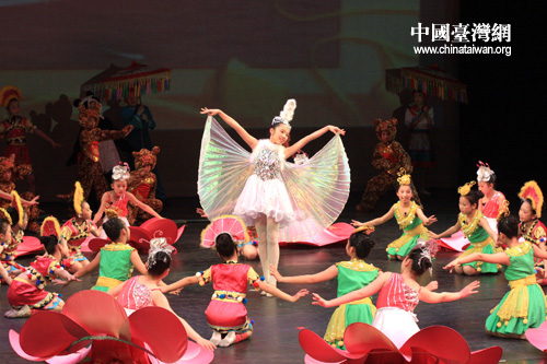 2月1日晚,2010第十二届两岸和平小天使交流晚会《闽台缘·手足情》在台北市孙中山纪念馆上演。图为舞蹈《团团圆圆》。 (中国台湾网 田云鹏 摄)