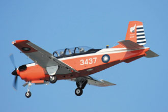前日上午,台空官校校长田在劢驾驶同型机,从空官冈山机场起飞执行失事后首批试飞任务,一个多小时后顺利返场。田在劢表示,T-34C教练机操控稳定度高,经特检证明安全无虞,校方将持续执行飞行训练。(刘海伟)