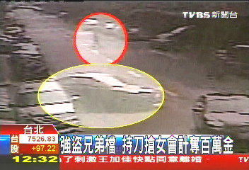 中国台湾网2月3日消息 据台湾TVBS电视台报道,台北市龙江街昨天发生重大抢案,一名女会计从银行领了公司员工薪水,才走出银行门口,就遭到3名持刀歹徒抢走,损失167万元(新台币,下同)。由于歹徒犯案后,在现场遗留一个皮夹和健保卡,警方锁定一对黄姓兄弟档涉有重嫌,透过监视器画面,也确认他们在案发前,已经在银行附近伺机行抢,目前正全力追缉。