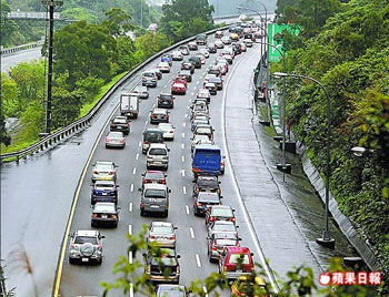 台湾高速公路昨涌现出游和提前北返车潮。来源:台湾《苹果日报》