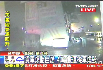 货车在台中县爆胎自燃(图:台湾TVBS电视台)