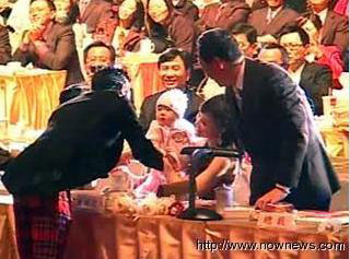 抱着宝贝女儿在尾牙上亮相,郭台铭脸上洋溢着慈祥的父爱,事业触角延伸幼教产业,尾牙上找来故事屋合作设临时托儿所。小妞妞还没出生,郭台铭更早一步有资金挹注脐带血公司,看来小妞妞不只是郭董的福星,也替周边产业带来商机。(刘海伟)