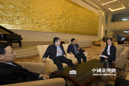 3月2日上午,在政协委员驻地北京会议中心,全国政协委员、广西壮族自治区政协副主席彭钊带着自己本次“两会”上的提案《关于加快西江黄金水道建设,推动滇黔桂粤区域经济合作的提案》和全国政协委员、云南省政协副主席陈勋儒等进行交流探讨。(中国台湾网 肖春阳 刘洋 摄)