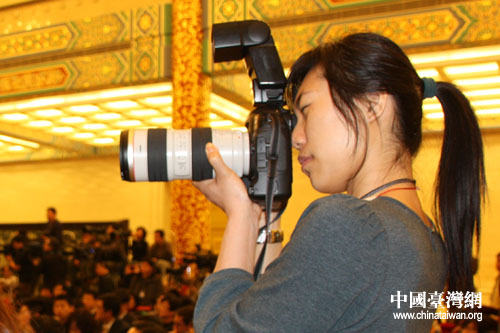 美女记者一瞥 (中国台湾网 徐维彬 摄)