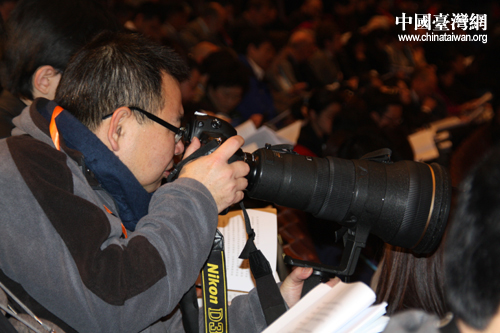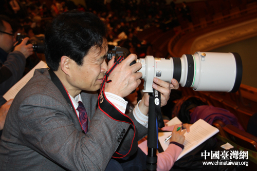 全国人大十一届三次会议上正在拍摄新闻图片的记者 (中国台湾网 胡珊珊 摄)