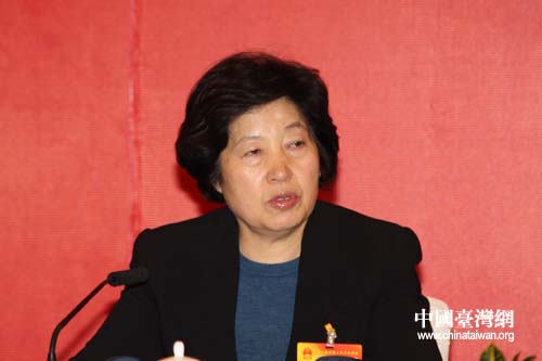 图为全国人大代表、中共福建省委书记孙春兰在审议政府工作报告 (中国台湾网 徐维彬 摄)