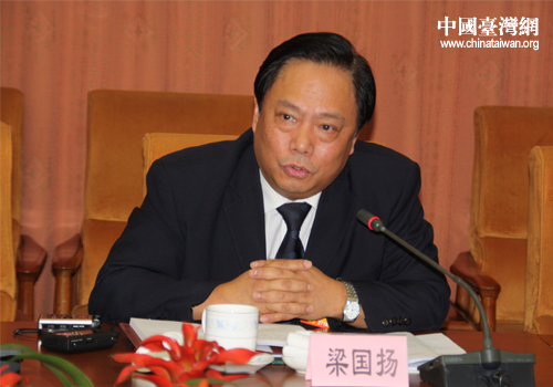第十一届全国人大三次会议台湾团团长梁国扬发言。(中国台湾网 胡珊珊 摄影)