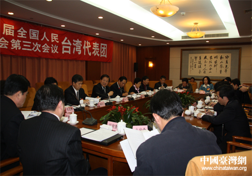 第十一届全国人民代表大会第三次会议台湾代表团热议政府工作报告。(中国台湾网 胡珊珊 摄影)
