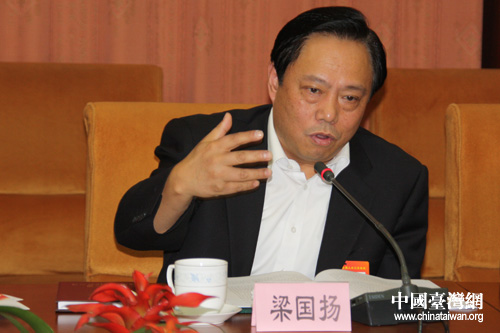 十一届全国人大第三次会议台湾代表团审议政府工作报告,中华全国台湾同胞联谊会会长、人大代表梁国扬发言 (中国台湾网 胡珊珊 摄)