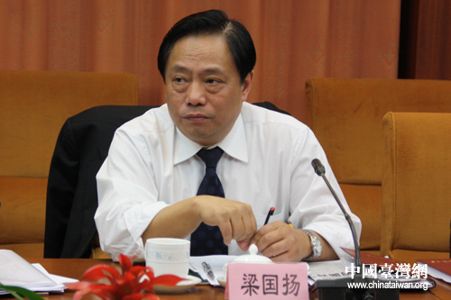 图为全国人大代表、中华全国台湾同胞联谊会会长梁国扬在审议预决算报告 (中国台湾网 徐维彬 摄)