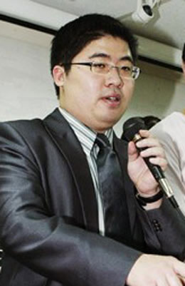 民进党年轻世代昨天举行记者会,前民代蔡启芳的儿子蔡易余(左)呼吁年轻人可以上网噗浪,为民代补选催票。图片来源:台湾《联合报》