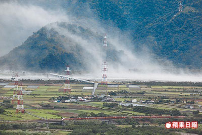 中国台湾网3月10日消息 据台湾《苹果日报》报道,三月寒流来袭,宜兰县南澳乡的南澳溪吹起强风,扬起滚滚沙尘暴,满天风沙沿着河谷,越过山峦不断挺进,气势盛大,令人叹为观止(图)。