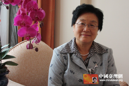 图为台籍代表魏丽惠接受本网记者专访 (中国台湾网 徐维彬 摄)