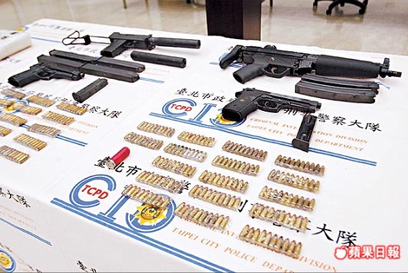 台北市警方在黑帮承租套房内,起出火力强大的冲锋枪。(图:台湾《苹果日报》)