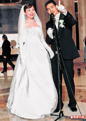 昨天婚宴进行到一半时,连胜武、路永佳下楼接受台湾媒体访问。连胜武直笑说:“很开心能有好结果,很荣幸有很多长辈来,也很希望大家都能美满开心。” 由于路永佳穿的是没有腰身的晚礼服,台湾记者询问连胜武妻子是否有喜?连胜武大打太极:“今天大家都有喜!”