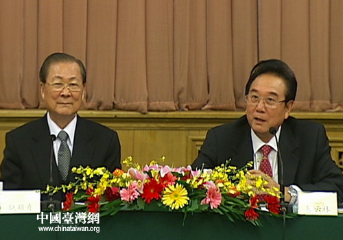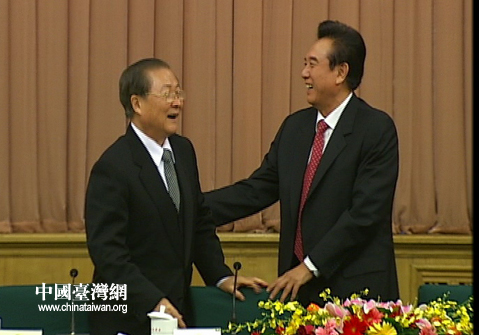 17日下午,“两岸民间文化交流座谈会”在北京全国政协礼堂举行,海协会会长陈云林(右)和海峡两岸民意代表联谊会会长饶颖奇出席。(中国台湾网 李丹 摄)