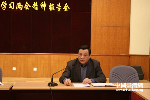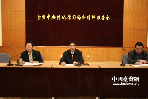 台盟中央组织部副部长蔡国斌传达全国政协十一届三次会议精神。 (中国台湾网发 刘中威摄)