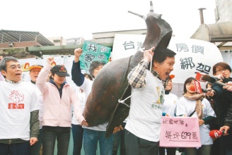 昨天李幸长背起11公斤、当年抗议的蜗牛模型,选在台北市仁爱路临沂街口抗议,该地原本是116.6坪(1坪约合3.3平方米)公有土地,今年1月28日标出,每坪679万,总价7.8亿。