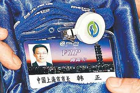 台北捷运送给韩正捷运VIP一日票,上面以简体字书写。图片来源:台湾《苹果日报》
