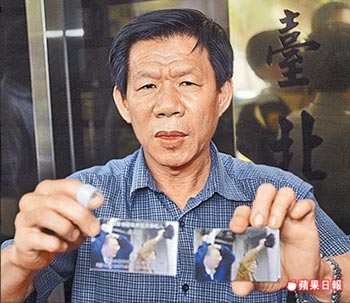 扯邱毅假发照片印名片,黄永田一审遭判6个月。来源:台湾《苹果日报》