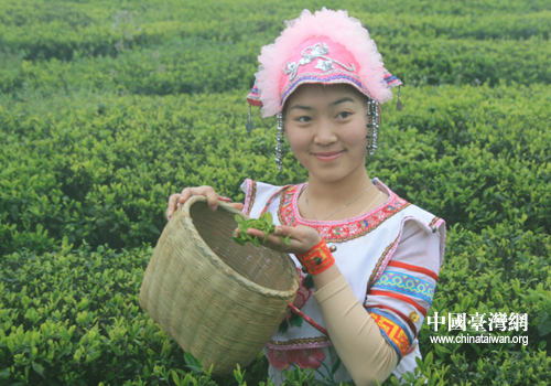 勤劳美丽的采茶姑娘,纤手与茶枝舞蹈,花篮同茶芽争香。(中国台湾网 李丹 摄)