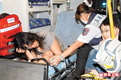 6岁男童安慰酒后自残的母亲说:“要听警察叔叔的话哦。” 来源:台湾《苹果日报》