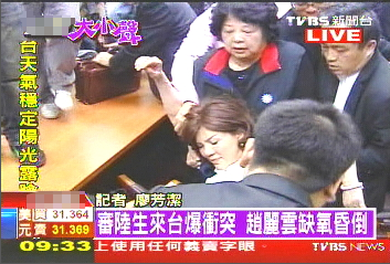 原本应该在9点开始的议会,蓝绿民代竟然为了抢发言权,爆发全武行,场内一片混乱,100多位校长也只能在会场外干等;在冲突当中,民进党民代叶宜津一开始被压在桌上,痛得哇哇大叫,赖清德和洪秀柱甚至直接站在桌上对骂,国民党民代赵丽云还被压住脖子,最后竟然昏倒送医。