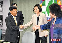 蔡英文(中)邀陈菊(右)、杨秋兴(左)会谈,双方把话讲开。来源:台湾《苹果日报》